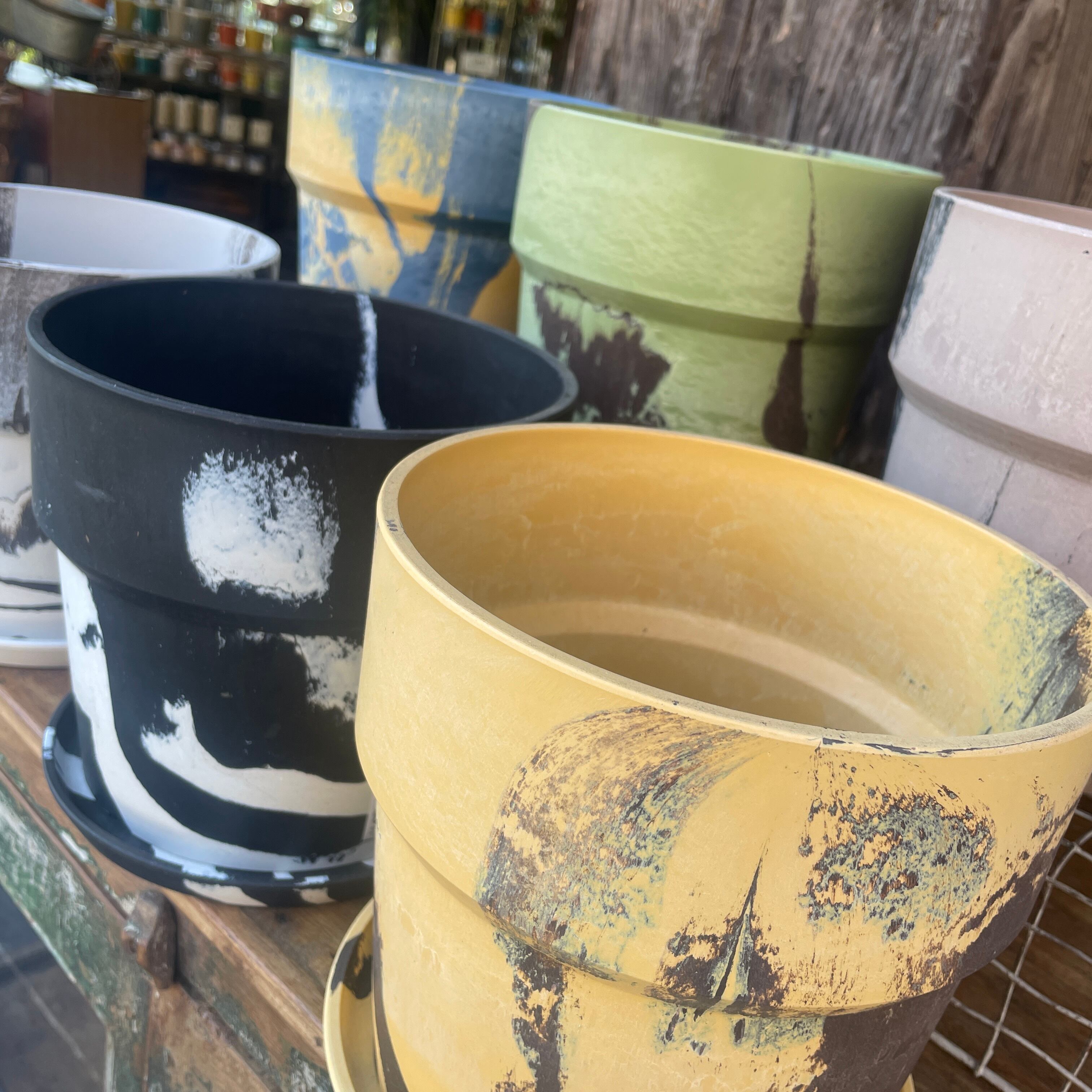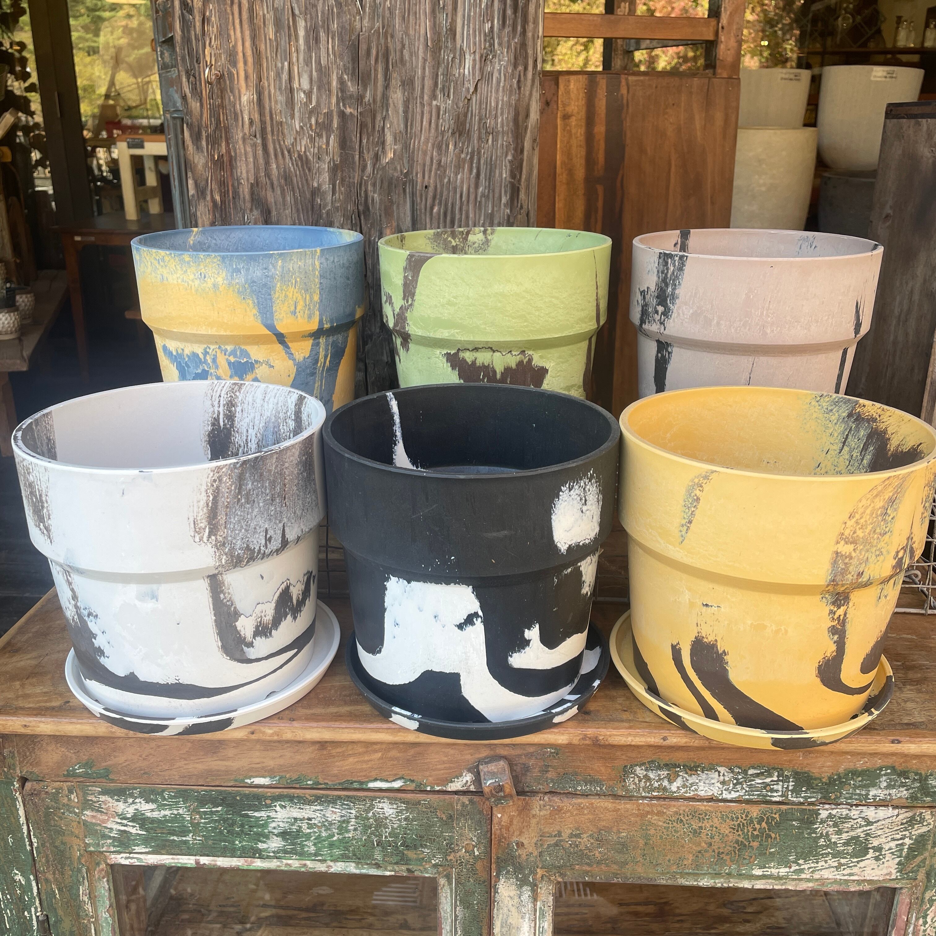 おかくずと石、自然素材の粉末とプラスチックを混ぜ合わせて作られた、軽量かつ丈夫な鉢です。